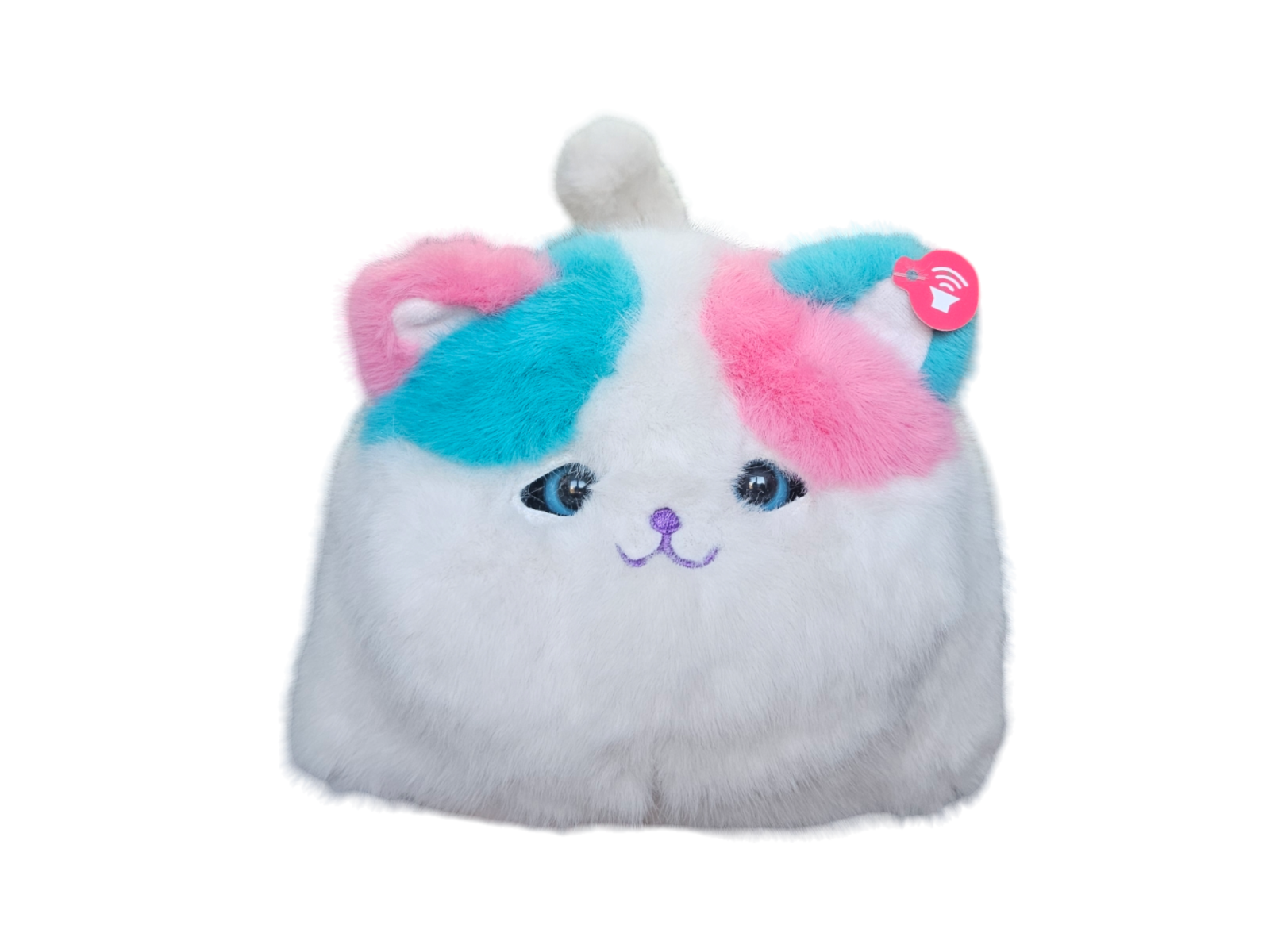 Pisica Interactiva din Plus, Efecte de miscare a cozii si clipirea ochilor, 2 cantece, Toarce cand este mangaiata, Material moale si pufos, Cultiva afectiunea si empatia, ERGINO®Baterii incluse, 29cm