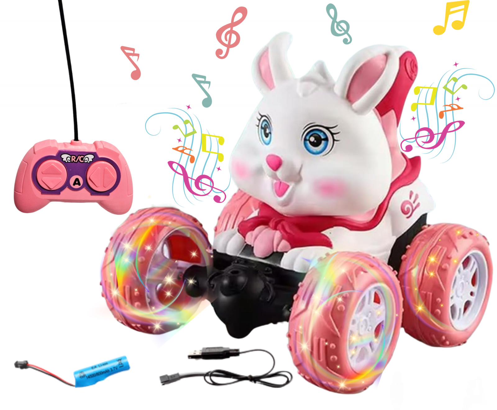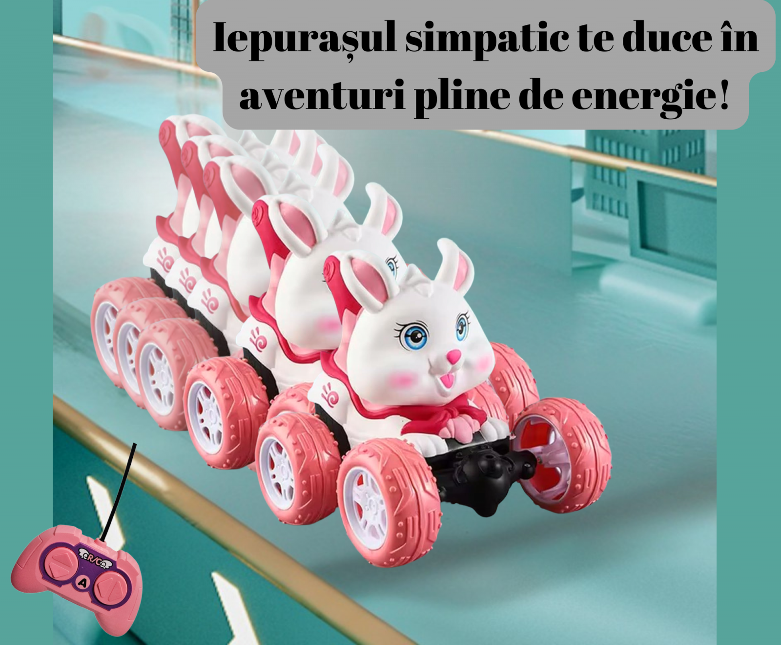 Masina cu Telecomanda, Acrobatii, Rotire 360°, Sunete si Lumini, Rezistenta la Impact, Baterie Reincarcabila, Cablu USB, Roti Antiderapante, Iepusras, 20cm, ERGINO®