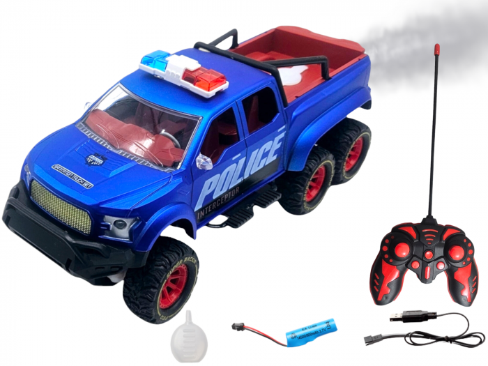 Aceasta masina de jucarie tip pick-up de politie cu telecomanda impresioneaza prin designul sau robust si caracteristicile avansate. Creata special pentru a oferi o experienta realista si captivanta, acest vehicul de jucarie este un model mare, cu o lungime de 24 cm, si se remarca prin detaliile sale autentice. Fiecare element, de la rotile masive pana la efectele spectaculoase de lumina si abur, transforma joaca intr-o adevarata aventura. Este ideala pentru copiii pasionati de vehicule de interventie sau pentru cei care iubesc jucariile interactive si tehnologizate.