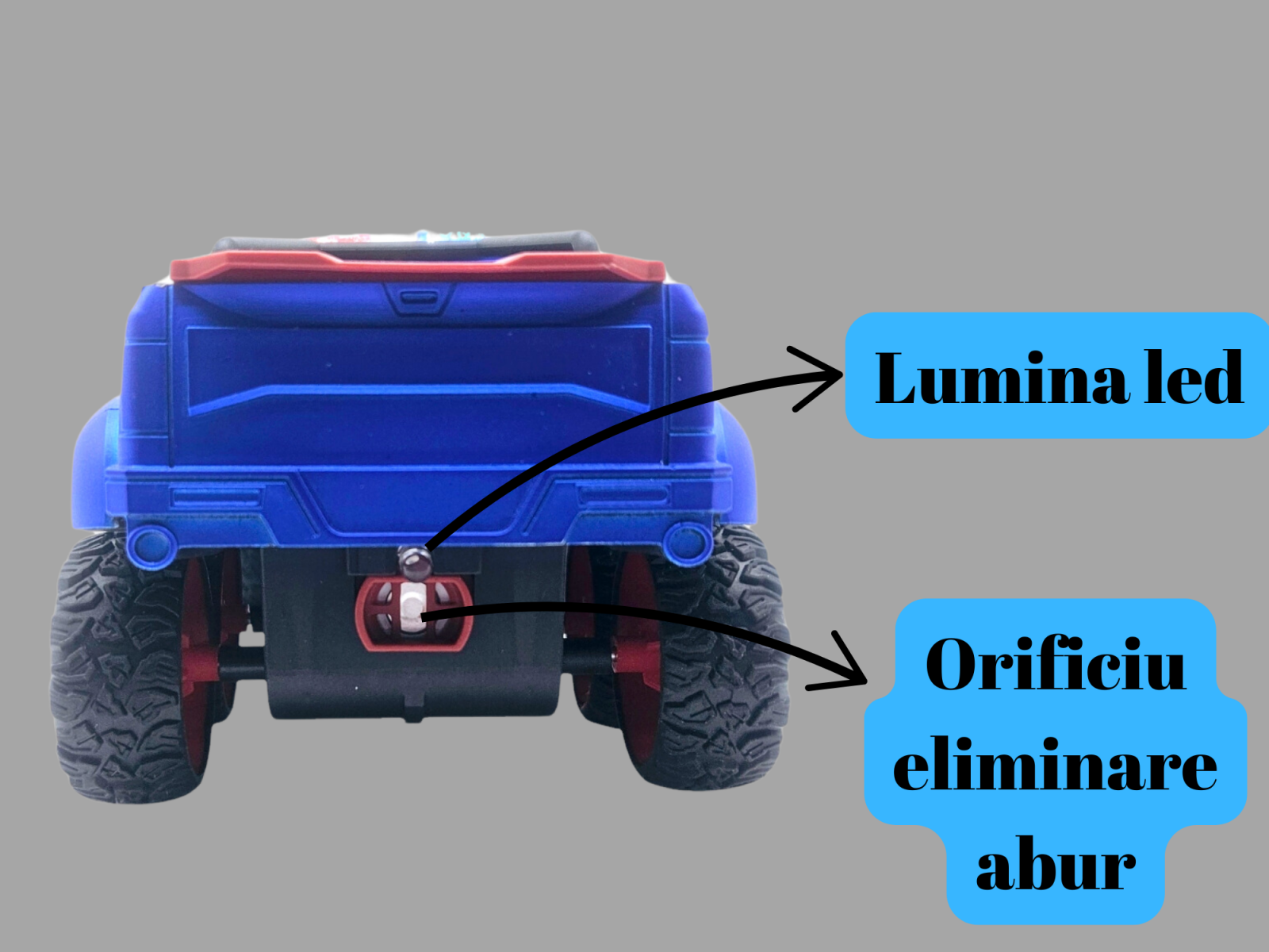 - Telecomanda: Controleaza vehiculul in 4 directii (inainte, inapoi, stanga, dreapta). Este intuitiva si usor de folosit.