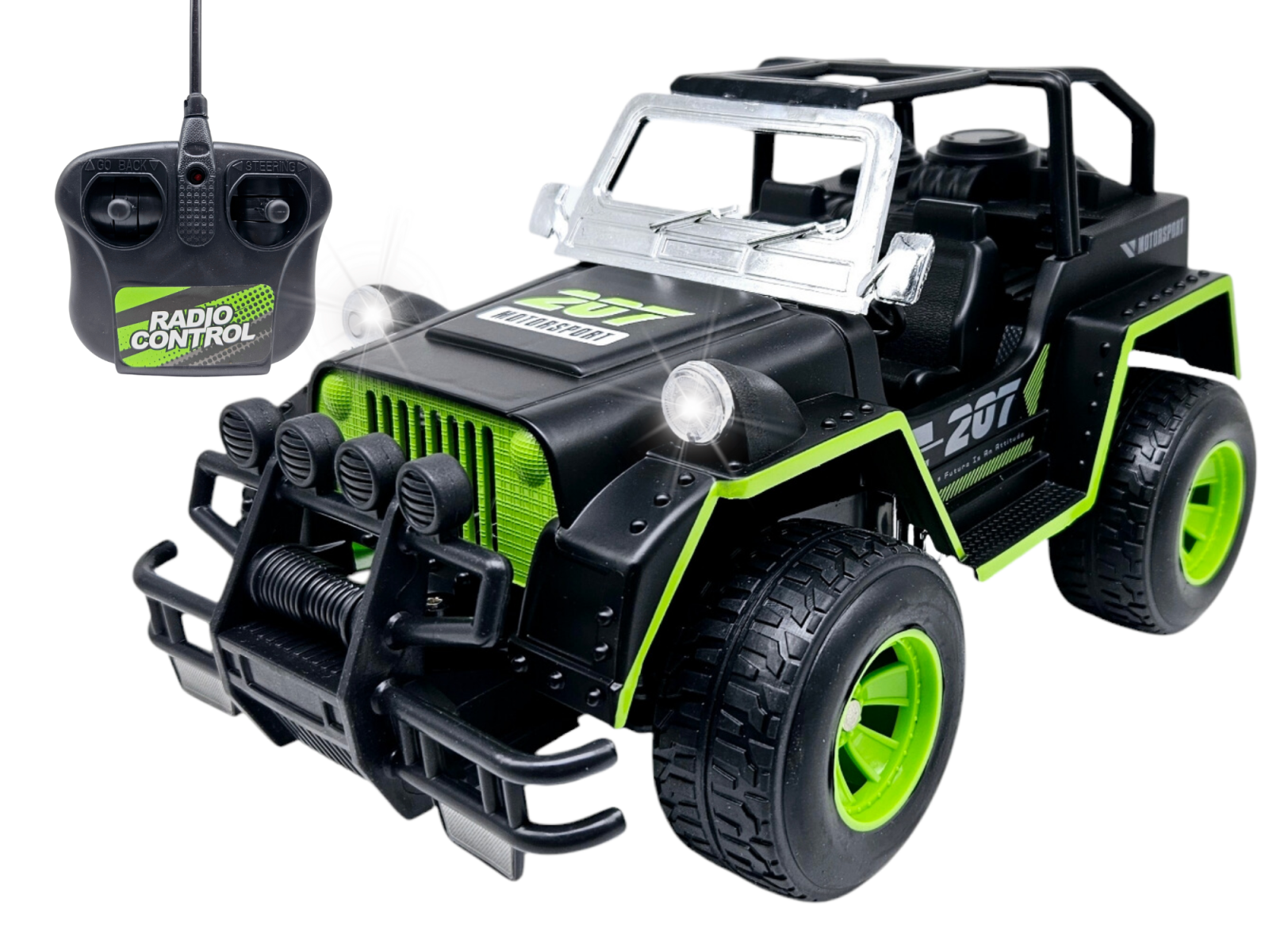 • Jeep off-road decapotat: Realizat din plastic premium, durabil si sigur, jeep-ul are un design realist si atractiv, ideal pentru exploratori.