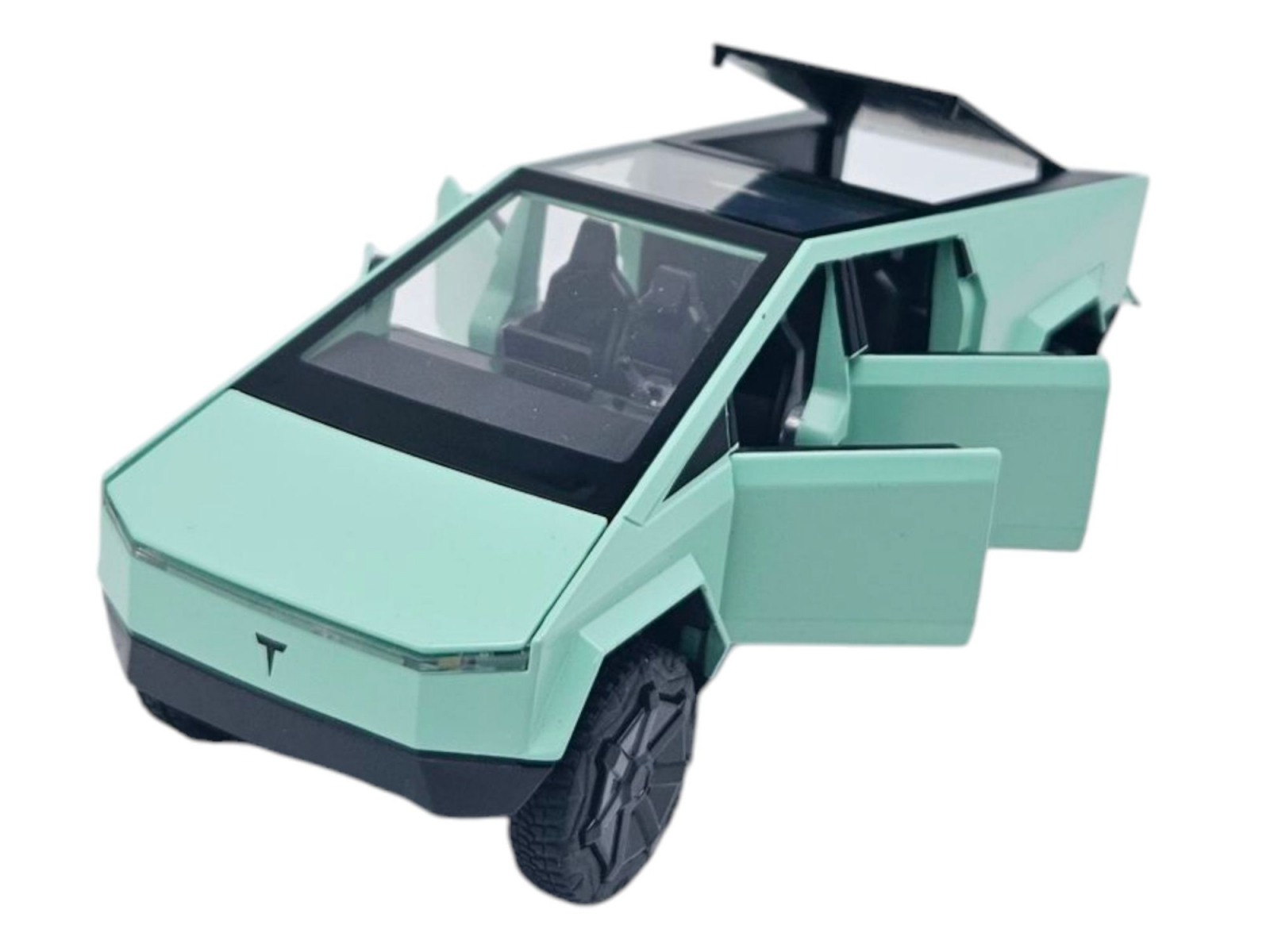 Masina Metalica tip Tesla Cybertruck, Sunete Realistice, Farurile si Stopurile lumineaza, Usile, capota si portbagajul se deschid, Baterii incluse, 18cm, Verde