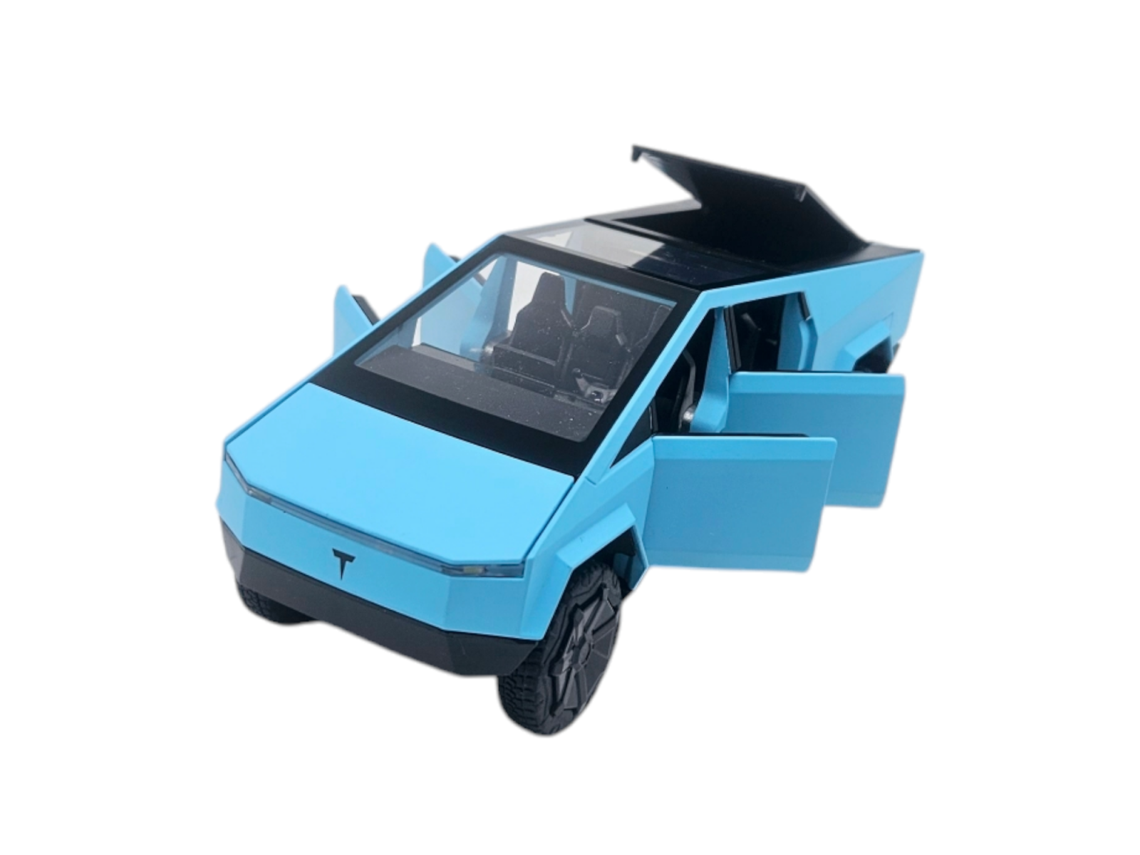 Masina metalica tip Tesla Cybertruck, 3 sunete realistice, Farurile si stopurile lumineaza, Usile, capota si portbagajul se deschid, baterii incluse, 16cm, Albastru