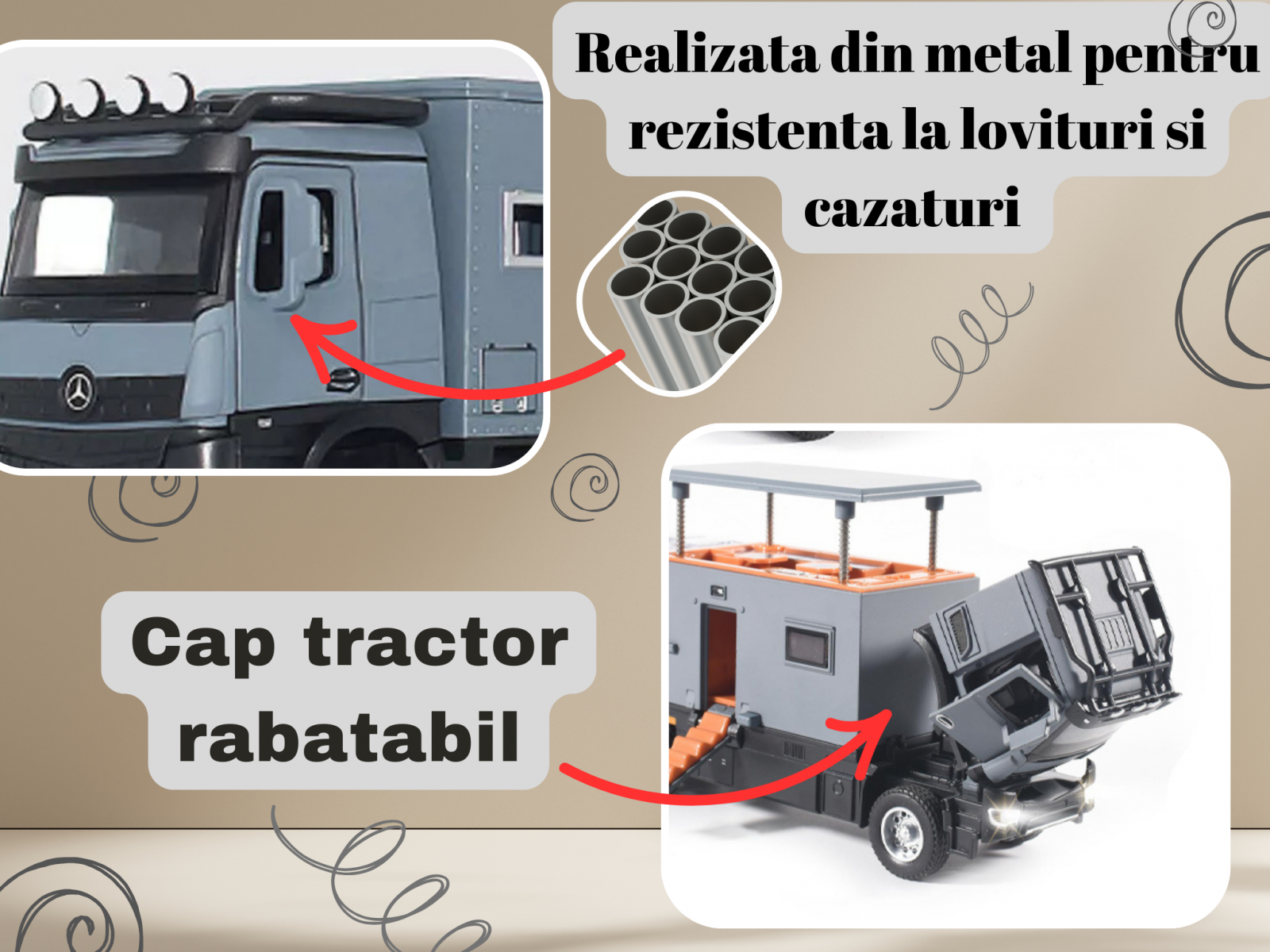• Sunete si lumini: Echipat cu efecte sonore si lumini stralucitoare, camionul adauga o dimensiune interactiva jocului, oferind o experienta realista.